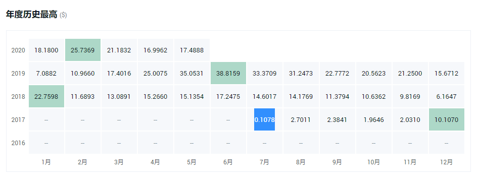 4.2020年,币安币BNB开盘价最高25.7369美元,最低16.9962美元