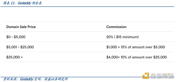 ENS通过NFT记录域名产权,使用NFT的基础设施。ENS作为NFT,天然具有传统域名所不具备的优势,包括:基于区块链交易保证了交易安全性。佣金较低。以目前最大的NFT交易平台Opensea为例,出售NFT的手续费仅为2.5%。交易手续简便。买卖双方只需要前往NFT交易平台,使用Web3钱包连接后选择心仪的域名下单即可。而在传统的域名市场,二次交易的流程繁琐,安全性和费用都不让人满意。市场缺少标准化的流动性基础设施,往往需要中介撮合,并收取不少的佣金费用。同时存在一定的违约风险,跨地区的交易将会有难以维权的问题。以目前最大的二手域名交易平台之一Godaddy为例,出售域名需要支付大约20%的平台佣金。