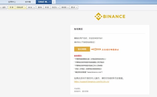 登陆注册邮箱点击Binance验证链接进行邮箱验证。