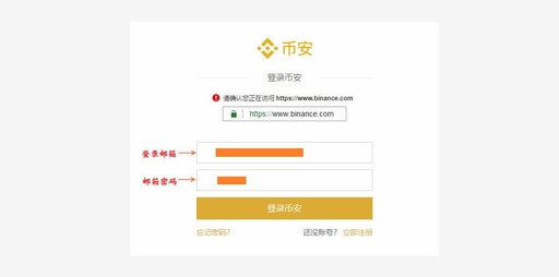 点击登录页面进行账号密码输入,点击“登录币安”。